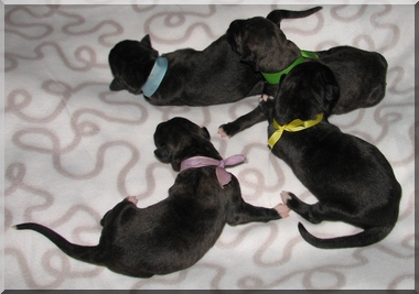 Naší Betty se 8. září narodilo 7 krásných štěňátek - 1 chlapeček a 6 děvčat. |